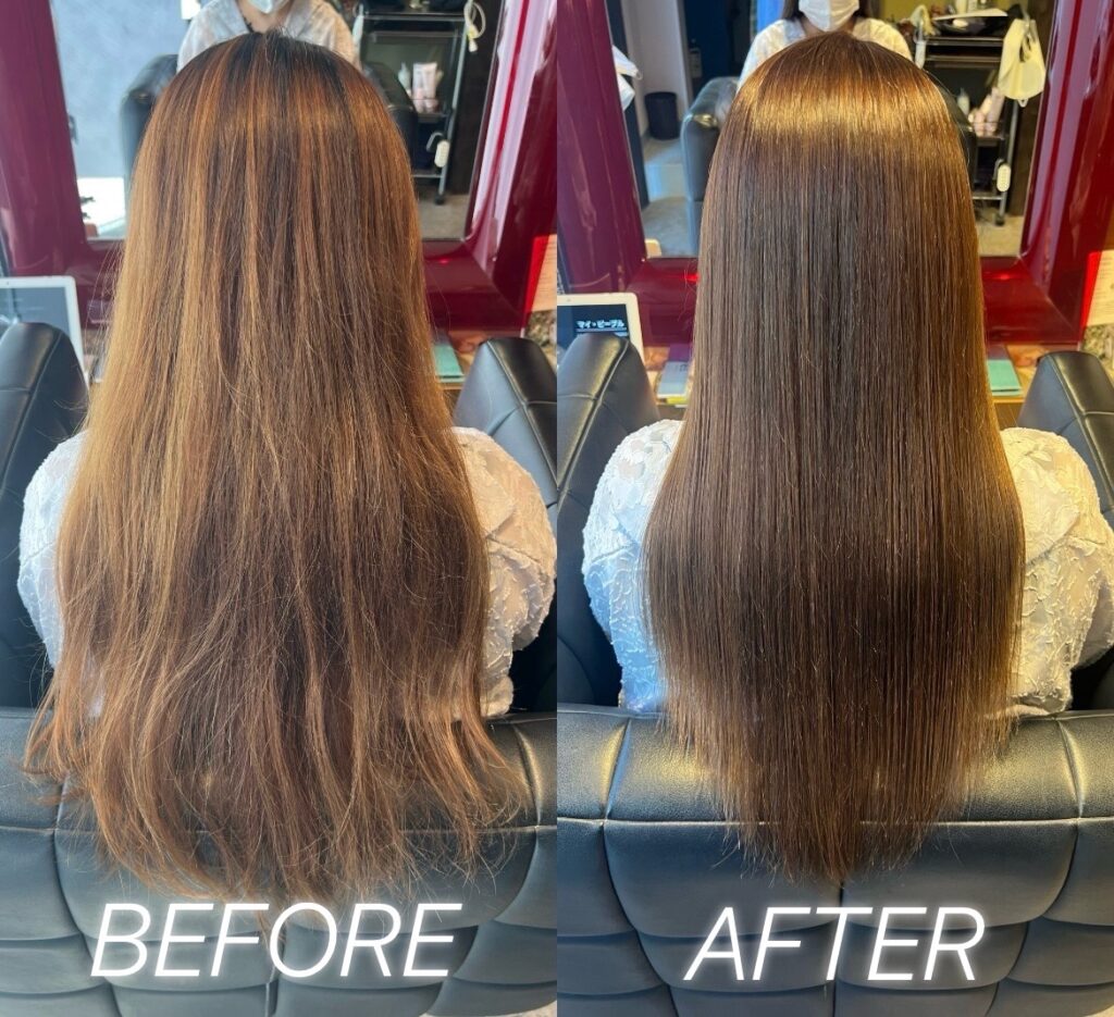 A,場合によっては一度では理想の状態にならないこともあります。髪や頭皮の状態を見て、必要であれば髪質改善トリートメントと併用して確実に綺麗な髪を作っていきましょう。
